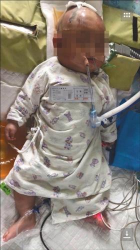 童童被推入重症监护室,仍处于昏迷状态。 受访者供图 新京报图