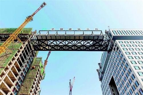 图文:全国,跨度钢连廊在光谷“升空”