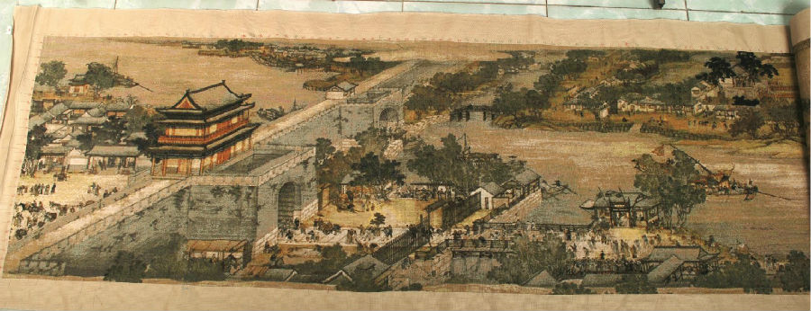 保定妇女耗时两年,以清明上河图为主题,绣制了一幅长6米、宽1.45米的巨幅十字绣,绣线颜色达150余种,用线量达到20公斤,图案逼真美感强。电话 15210196690