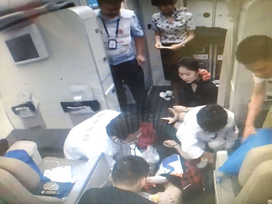 飞机进入平飞状态后,头等舱乘务员王玥像往常一样开始巡视客舱,这时坐在6J的旅客林先生告知她自己身体不太舒服,要求提供一杯蜂蜜糖水。王玥立刻回到服务舱将此情况报告乘务长张慧敏,并按照旅客要求准备好蜂蜜糖水。张慧敏得知此事第一时间来到服务舱询问旅客情况,经了解得知林先生有哮喘病史,此次是一人独自前往西安,更糟糕的是临走时将随身携带的药物遗忘在了酒店。这时她观察到旅客呼吸开始变得粗重,便立刻帮助他将蜂蜜糖水服下,并取下就近的氧气瓶为旅客吸氧。同时,头等舱乘务员王玥迅速将旅客情况报告机长后,开始广播寻找医生。机组经综合考虑周边机场天气及机场保障能力,决定申请直飞,大速度飞向西安。