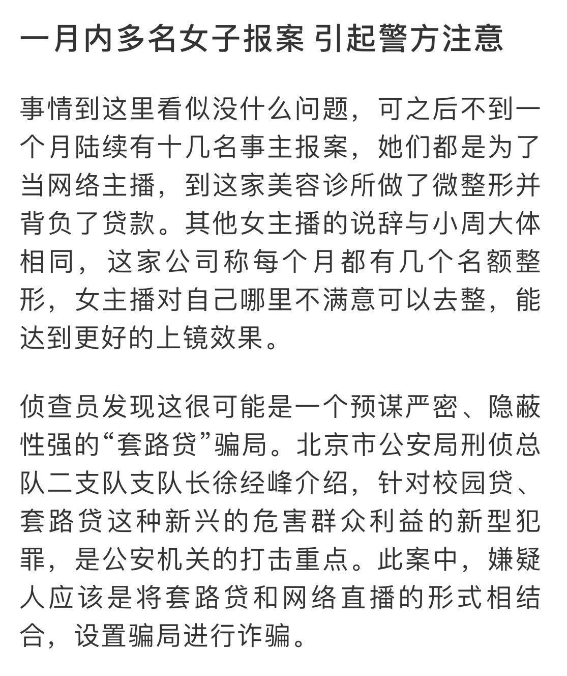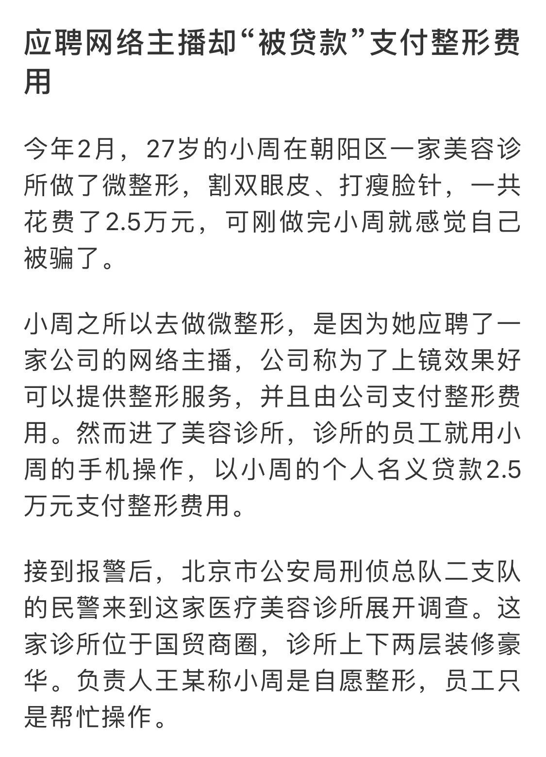 实际上,被招来的女主播都是以个人名义贷款做了微整形,不仅没成为“网红”,反而欠下了几万元的债。
