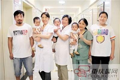据统计,自然受孕中生三胞胎的几率是几十万分之一,特别是对于一对结婚多年没能要上孩子的夫妇来说,能生下三胞胎,更是莫大的欣喜。9月6日上午10时,家住彭水县的谢女士夫妇带着三胞胎宝贝,来到医院,感谢帮助过他们的医护人员。