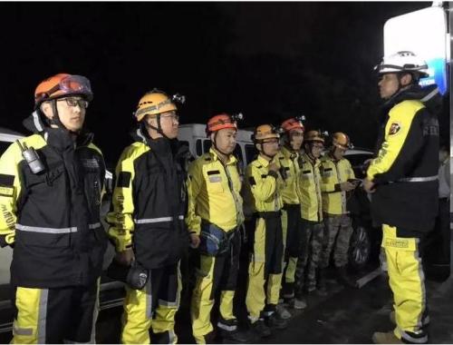 晚上10点09分,记者了解到,因为下雨,山上救援条件恶劣,没有光源,只能凭借搜救队员手中的强光电筒照明。
