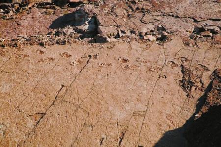 三比罗嘎东岸脚下蜥脚类恐龙行进足迹。