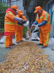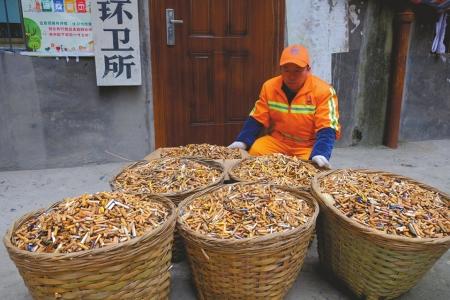 乐山一环卫所14天捡拾100斤烟头