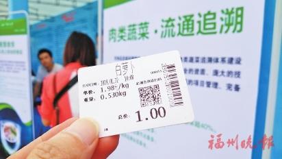 昨天市政府新闻办组织召开新闻发布会,通报我市肉类蔬菜流通追溯体系建设情况。目前,福州已建成猪肉蔬菜流通追溯体系,就像给它们配上“身份证”。已有上百个市场终端接入这个系统,市民在主要超市、农贸市场、肉菜专卖店等地购买蔬菜和猪肉,都可扫描价签或小票上的二维码,追溯生产、质量以及流通环节等信息。