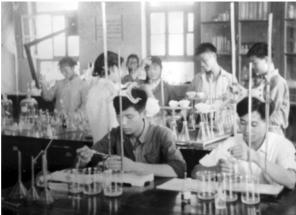 1965年塔大学生在上化学实验课(资料图)。