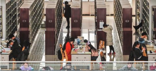 塔里木大学师生在今年新落成的图书馆里学习。