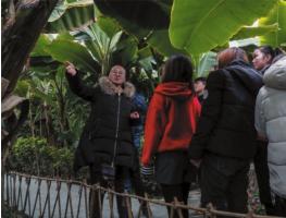 12月16日,在阿拉尔市印象蓝泊湾生态观光园,塔里木大学植物科学学院2012年毕业的齐华玲给游客讲解植物生长知识。