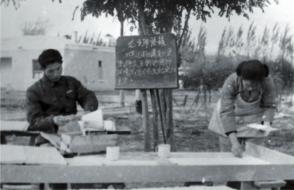 塔大建校初期,教职员工制作粉笔等教具(资料图)。