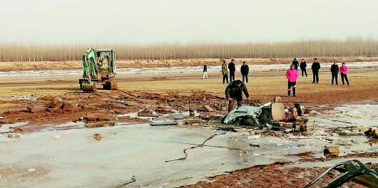 2018年12月30日下午四点多,一辆面包车也来到附近的黄河滩。“结果,面包车在过一道结冰的水沟时不慎轧破冰面落入水中。”路过现场的张先生告诉记者。2018年12月31日上午,面包车司机找了两辆小货车前来救援。可由于面包车在水里待了一夜,车体被冻住,货车拖车时将拖车绳从面包车驾驶室穿过,没想到却把面包车扯成两半,只将驾驶室部分拉了上来。