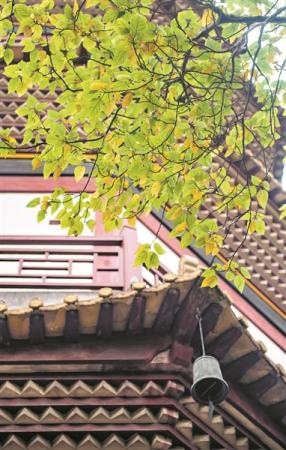 赤岗塔的黄瓦腰檐上缀着铜制风铃