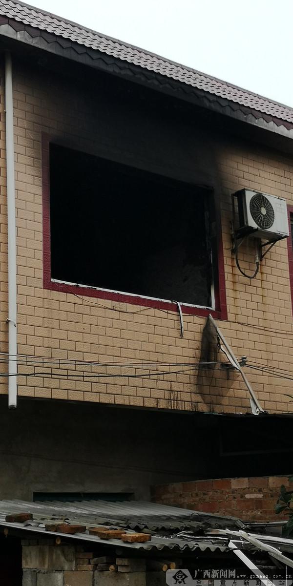 上蔡塘村一农宅二楼房间突发大火,图为事故现场。广西新闻网记者陈创明摄
