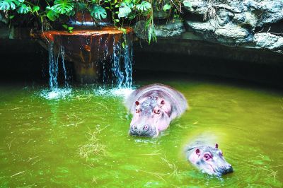 “这个水池是供应温水的恒温水池,河马泡在里面就像人类泡澡,既符合它的生活习性又能防寒保暖,一举两得。”犀牛河马班班长赵晋元介绍,自然环境中,河马栖息在河流附近的沼泽地和水草丰盛处,,绝大多数时间都在水中活动。每年10月中旬到第二年4月底,河马转场到室内,享受集中供暖和恒温水池。“通过交换器,用供热管道的水预热自来水管道的水,池水温度可以保持在20度左右,这种方法还能达到节能的目的。”赵晋元说。