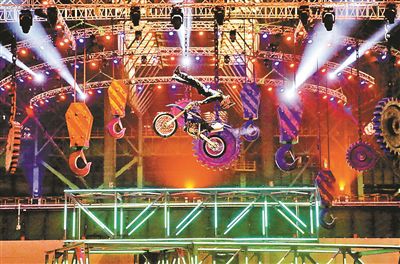 “汽车单轮行驶、定点漂移旋转、摩托空中飞跃……”上午10点,首钢赛车谷宣传片和“华家班”汽车特技表演团队的演出在首钢赛车谷汽车特技秀场轮番登台。