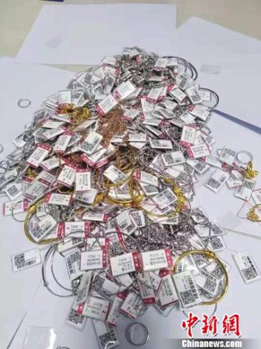 广州警方从涉案男子行李中缴获的珠宝首饰。广州警方 供图