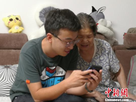 图为西安小伙阿晋和外婆在看照片。党田野 摄