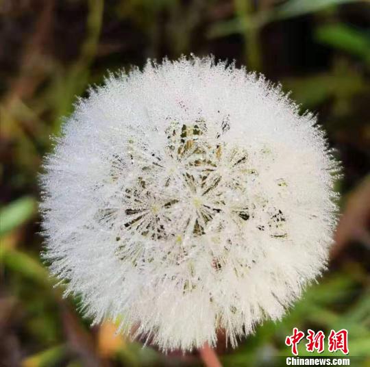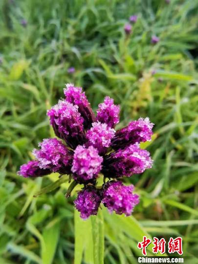 “神州北极”漠河迎来首场霜冻,花朵挂满了白霜。王景阳 摄