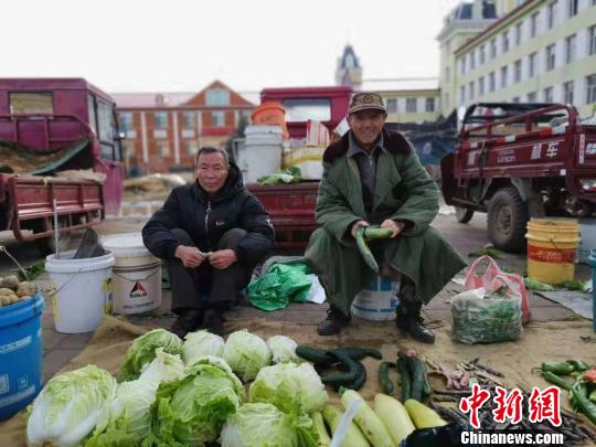 9月11日,漠河市早市上,商贩穿羽绒服卖菜。王景阳 摄