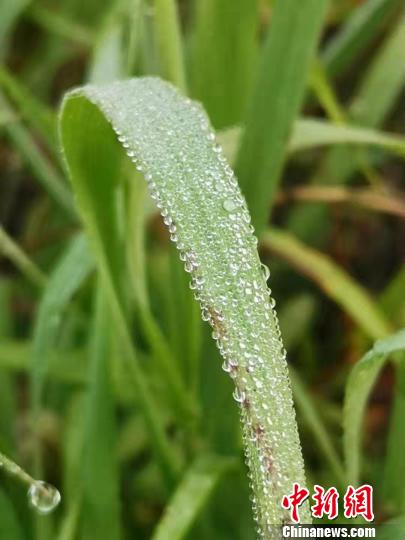 “神州北极”漠河迎来首场霜冻,植物叶子挂满了白霜。王景阳 摄