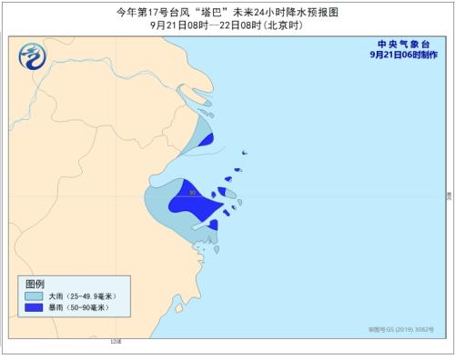 今年第17号台风“塔巴”(强热带风暴级)已于21日凌晨进入东海南部海面,早晨5点钟其,位于日本冲绳县那霸市西偏南方大约210公里的东海南部海面上,即北纬25.4度、东经125.8度,,附近,风力有11级(30米/秒),,,气压980百帕,七级风圈半径300-450公里,十级风圈半径100-200公里。
