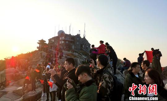 图为10月1日当天,来自全国各地的游客登泰山、观日出。孙宏瑗 摄