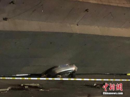 资料图:10月10日晚,江苏无锡,312国道上海方向锡港路上跨桥路段出现桥面垮塌,现场有多辆轿车被压。孙权 摄