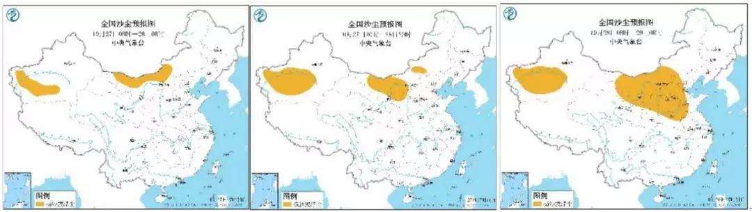 2019年10月27–29日全国沙尘预报 图片来源:国家大气污染防治攻关联合,微信公众号