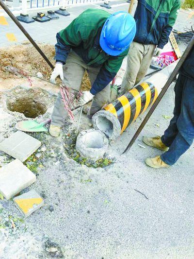 昨天上午9时30分左右,位于海淀区王庄路北口的多根电线杆被大风吹倒。