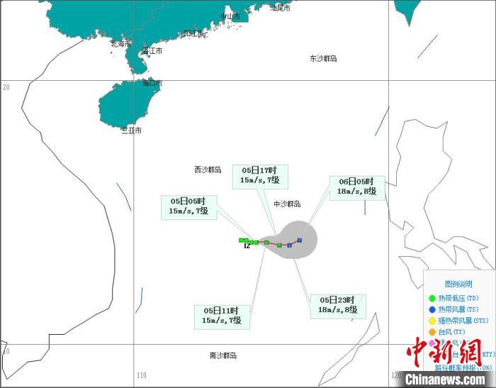中新网海口11月5日电 (董立就 李凡)记者5日上午从海南省气象台了解到,原位于南海海面的热带云团已于4日20时加强为热带低压,5日5时其,在距离西沙永兴岛东南方向约420公里的南海中南部海面上。预计,该低压,在南海中南部海域徘徊,强度逐渐加强,有可能于未来24小时内发展为今年第24号台风(热带风暴级),9日起转向偏西方向移动,趋向越南南部沿海地区。