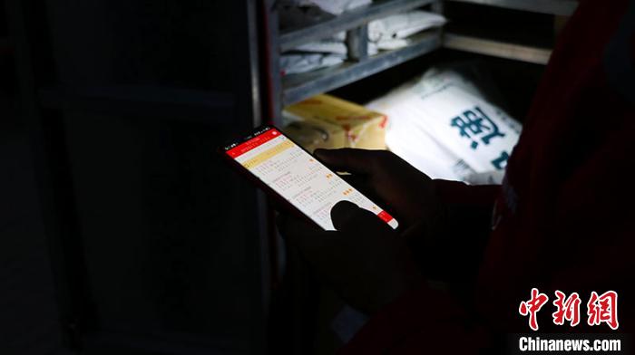艾尼瓦尔?艾合买提用手机终端查看快递送货记录。王小军 摄