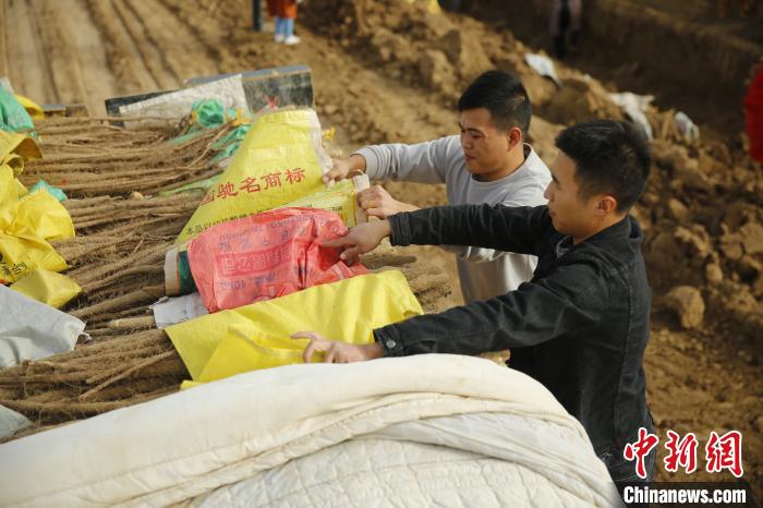 郭功铭和他的小伙伴们正在整理挖出来的山药 陈文峰 摄