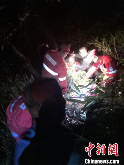 救援一行人在山中摸索近10公里。晚上10时30分左右,救援力量终于在山中找到被困驴友,迅速开展紧急救援处置,医护人员现场对受伤驴友进行医护处置。