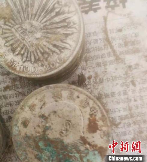 兰溪一地基中挖出千枚银元 。兰溪提供