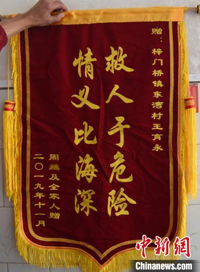 周仕祥准备送给王育永的锦旗。 双宣