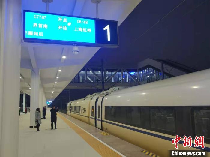 中新网界首12月2日电 (刘浩)2日早晨,郑阜高铁入皖第一站界首南站举行至上海虹桥站高铁始发列车,仪式。