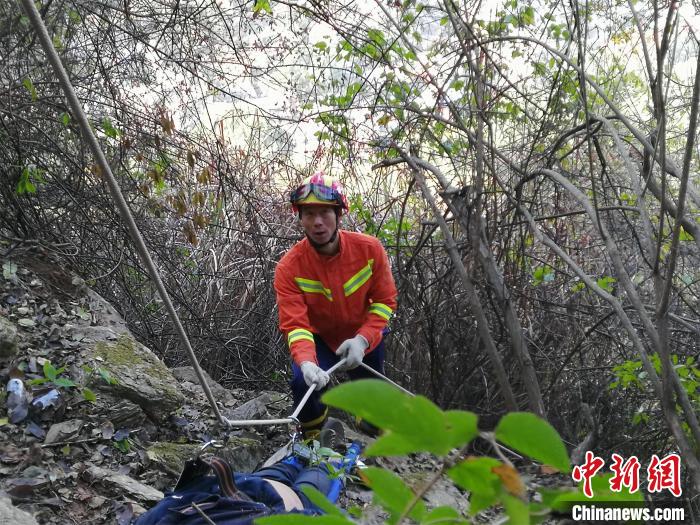 根据现场情况,救援人员利用救生绳索、多功能担架和救生吊带等工具开展救援。山势陡峭、道路狭窄,消防员抬着摔伤驴友小心翼翼下山,用时近3个小时,终于把驴友全部营救下山,伤者被送往医院接受进一步救治。