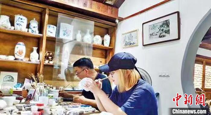 在千年古村鸣山村,坐落着一处鸣山陶院,院内摆放着一件件精美的瓷器,蛋画师傅静坐案前,一笔一画勾勒着唯美的山水画。