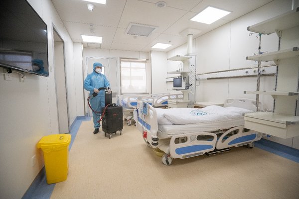 杰瑞华创静电喷雾装备用于医院消毒
