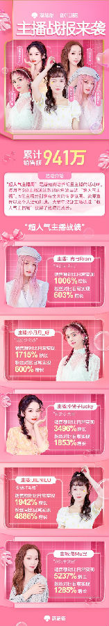 此次参与“超人气主播周”的五位主播各具特色,例如主播小月月_呀拥有极强的少女感,主播慕Mu宝则专注成熟辣妈风格搭配。值得一提的是,此次参与活动的五位主播为蘑菇街中腰部主播,但却共同创造了941万的销售额。