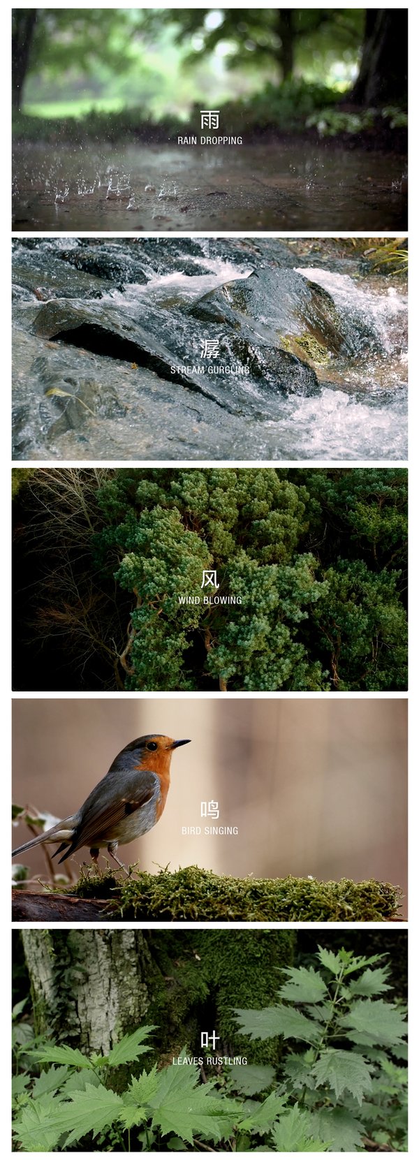 天地合气命之曰人,呼吸是人的立命之本,也是专业运动中的重要环节。本次FILA运用当下,的ASMR形式,于户外拍摄了一支先导片视频,综合视觉、听觉等感官打造沉浸式体验,以小见大得演绎与自然结合的5字减龄口诀 -- ”雨、潺、风、鸣、叶”,用自然元素的声音比喻运动呼吸节奏,在静谧的意境中打通消费者感官,短时间内建立联想,形成独特的品牌印象 -- 眼前是一片清新,耳边是自然的声音;感知呼吸与思想的同频共振,吐纳间身心减龄;FILA ATHLETCIS清凉新练综训系列配色清爽、面料透气的卖点也被更细腻得展现。