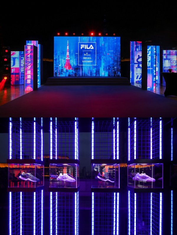 本次发布会打破传统秀场概念,将全新代言人官宣与时装秀场相结合,碰撞出无限魅力。青年音乐人蔡徐坤作为FILA代言人,露面,为全场带来巨大惊喜。现场发布的FILA x Maison MIHARA YASUHIRO全新概念影片中,不同锋尚者打破时空界限,透过镜面展示“我”与“我的可能”,在城市丛林中舞动跳跃,将本次联名合作的理念传递给在场集结的锋尚者。发布会上结合了东京潮流和上海都市夜景的走秀环节、呈现出FILA百年品牌的优雅基因的展区联动、和以品牌红蓝基调的光束形成的互动体验,共同呈现出联名系列的撞搭之美。