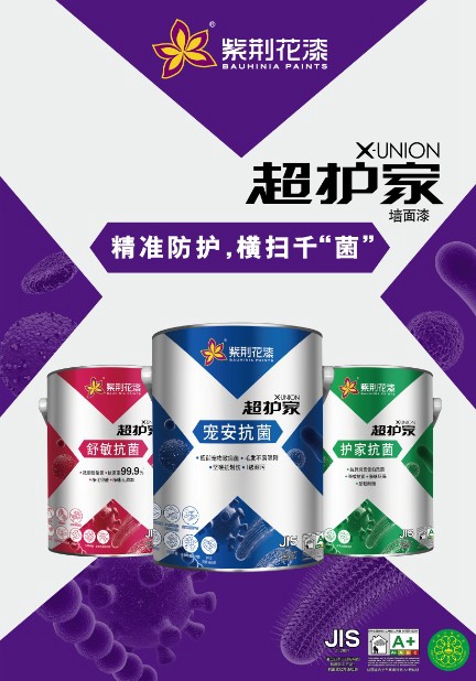 超护家X-UNION系列延续了紫荆花一贯的优秀涂料技术和环保设计,除了获得中国环境标志、法国室内空气环境检测A+级认证外,其系列产品还通过了JIS Z-2801日本工业标准的抗菌加工产品-抗菌试验方法检测。日本工业标准(JIS, Japanese Industrial Standards)是日本的,标准之一。JIS Z2801通过对抗菌加工制品表面的细菌进行标准的抗菌试验,来评价其抗菌效果。国内外严苛环保标准的通过,正是紫荆花超护家X-UNION系列产品抗菌效果最有力的证明。