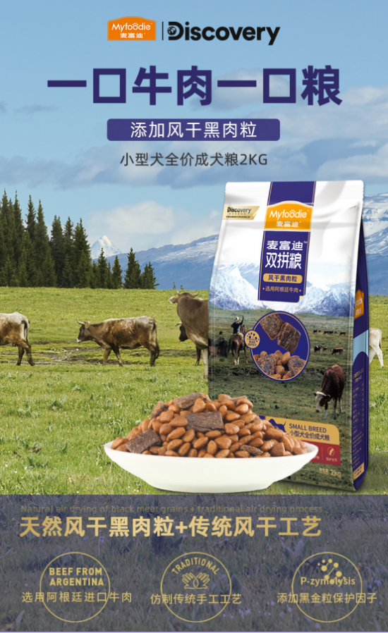 震惊!女明星小O竟为了一根香肠“碰瓷”黄小厨?!黄老师不慎踩到小O的脚,赶紧给了一块香肠安慰。说吧小O,香肠是不是能治“脚疼”?作为家里也养了狗子的小编,每每看到H和小O活泼调皮又聪明,都想亲手撸一下,作为蘑菇屋的卖萌担当,真的太可爱了!看着它们如此健康茁壮,就也给家里的狗狗安排上了他们的同款狗粮哦~蘑菇屋小H和O同款的麦富迪风干黑肉粒双拼粮还联名了DISCOVERY,高端大气同时诚意满满哦!风干黑肉粒含肉量高达98%!特选阿根廷剔骨牛肉,全部海外直采于潘帕斯草原牧场牛肉,全程冷链运输,确保新鲜口感。还特别搭配黑金粒保护因子,模拟高乔牧民10000次手工捶打,制成细腻手打肉酱,将细腻肉酱,平铺成0.8CM适宜厚度薄饼,再经-4℃冷冻切片,肉酱营养得到完整保留,低温切片更能减少细菌滋生。56℃恒低温脱水风干1500分钟,风干的肉粒散发原始风味,较之烘干的肉粒更有嚼劲,满足狗狗大口吃肉天性!还精选的绿唇贻贝,富含氨基葡萄糖、软骨素等抗炎症物质,能够有效保护关节健康。添加的三文鱼油含有丰富Omega-3、Omega-6不饱和脂肪酸,可帮助增加皮肤光泽,改善皮肤健康状况。特选南极磷虾,具有强力抗氧化作用,有助中和狗狗体内自由基、调节免疫力。而且麦富迪风干黑肉粒双拼粮,还科学的将天然风干黑肉粒与营养干粮颗粒1:4搭配,“一口牛肉一口粮”,协调狗狗的天性与营养!不含麸质蛋白、不含化学防腐剂、不含人工合成色素、不含化学诱食剂,还采用美国FDA认可的高能物理灭菌保鲜核心技术。