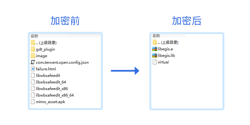 此方式会增加破解者在破解时阅读难度,但是安全强度有限,仅对资源文件进行重命名并不能有效的保护资源文件,破解者依然能可查看并修改资源文件内容,只是破解的时间成本增加了。