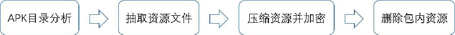 资源文件加密保护,通过加密手段,将Android资源的assets和res等目录的内容进行加密、隐藏及压缩,使用时再将文件解压并对文件解密。