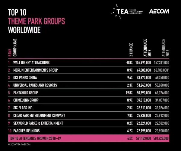 近日,在世界主题公园权威研究机构美国主题娱乐协会(TEA)与第三方旅游行业研究及咨询机构美国AECOM联合发布的2019全球主题公园和博物馆报告中,华侨城集团(华侨城A000069.SZ)跻身全球主题公园集团三强、蝉联亚洲第一,这也是中国文旅企业首度进入全球三强。