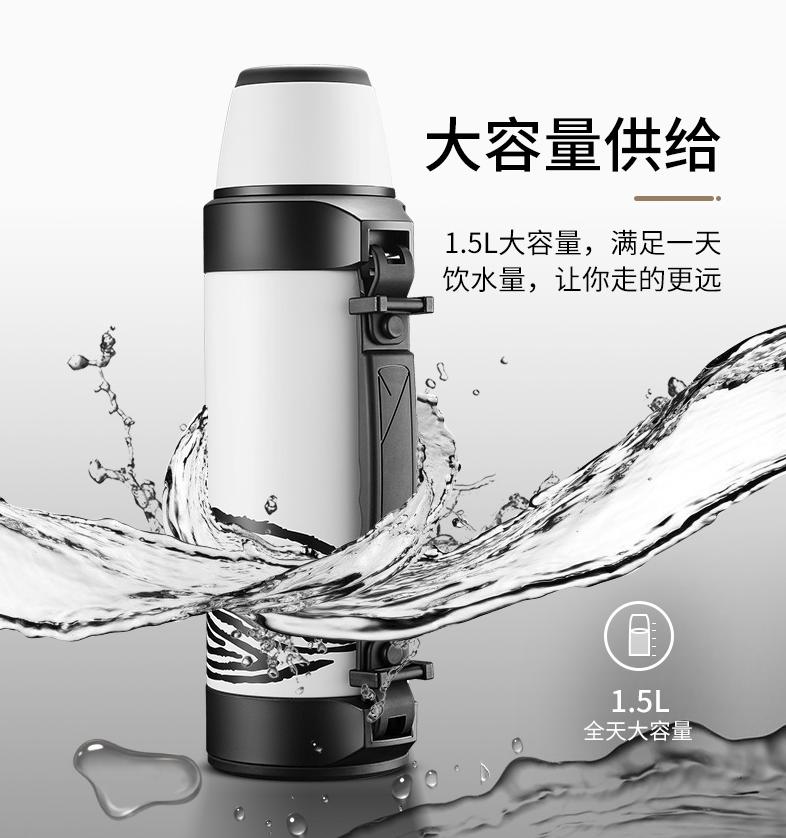 担心容量大登山游玩不好带?这款苏泊尔旅行真空保温壶自重比同等容量水壶轻许多,除把手外还带有可拆卸的背带随时挎上,户外运动携带无压力~水壶外部也采用不锈钢材质,耐磕耐碰。登山徒步,随身携带好省心。良好密封,有效防漏,怎么晃都不渗水。壶口各部分高度贴合密闭,再加上出水口处的安全开关,保证“守口如瓶”。还有雅白与酷黑两种配色,文艺girl与俊酷型男都能找到属于自己的style~