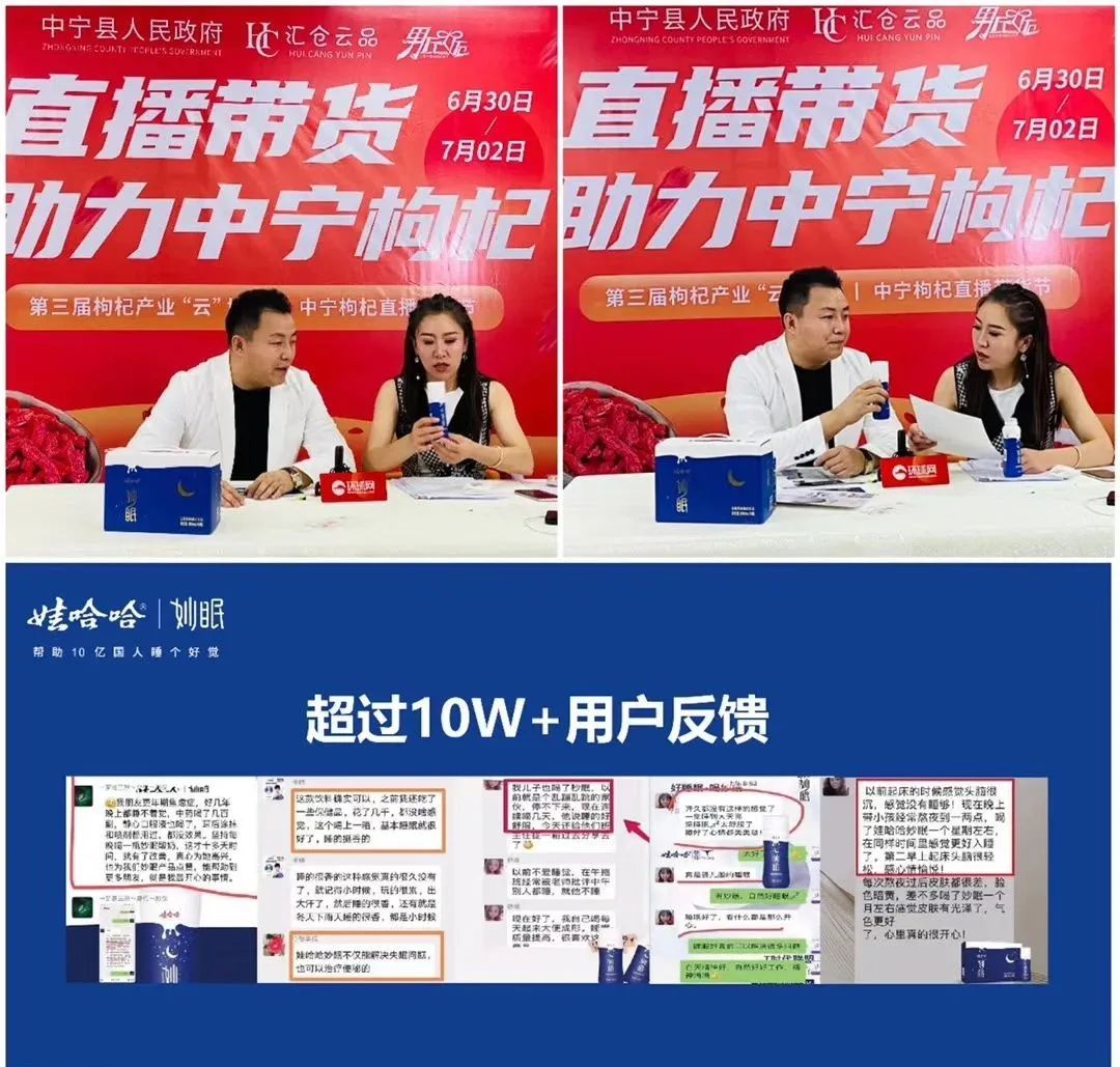 在电商经济时代,网络直播是宣传和推介特色产品的有效手段,相信中宁枸杞和娃哈哈妙眠一定能借助“网红+直播+供应链”的消费新模式,书写新篇章,为打赢脱贫攻坚战做出贡献。