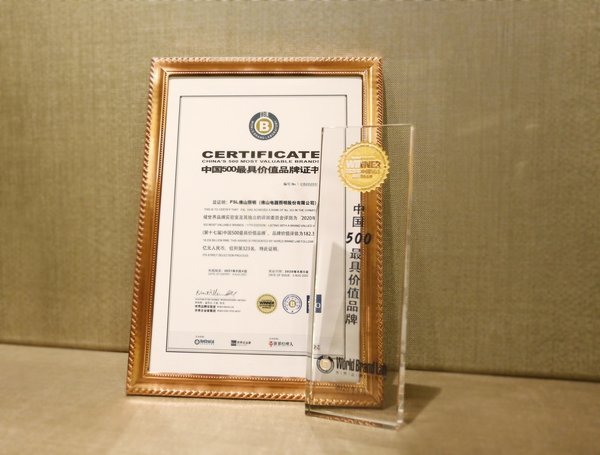 8月5日,由世界品牌实验室(World Brand Lab)主办的第十七届“世界品牌大会”在北京举行,发布了2020年《中国500,价值品牌》分析报告,在这份基于财务数据、品牌强度和消费者行为分析的年度报告中,佛山照明连续15年入选“中国500,价值品牌”榜单,品牌价值182.36亿元,同比增长15.48%,名列第323位。